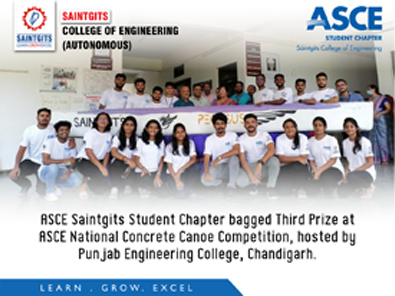 ASCE Saintgits Student Chapter bagged Third Prize at ASCE National Concrete Canoe Competition, hosted by Punjab Engineering College, Chandigarh.