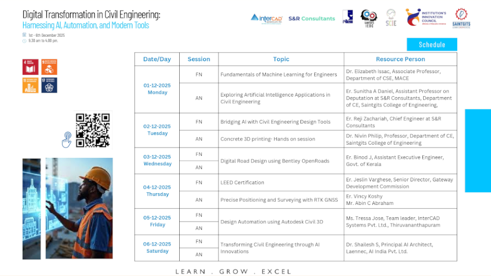 · Hands-on FDP on Digital Transformation in Civil Engineering using AI, automation and modern design tools
