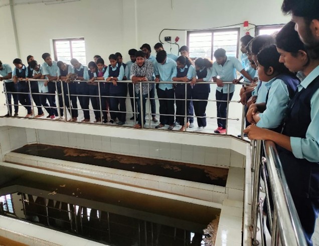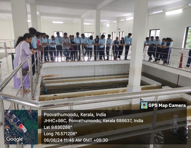 Number of Faculty Members: 10 The visit aimed to provide students with practical insights into modern water treatment processes and their significance in public water supply systems. The site staff conducted an introductory briefing, explaining the plant’s capacity, operational framework, and the critical role it plays in delivering potable water to nearby communities. Students were guided through various stages of the treatment process, including sedimentation, filtration, and chlorination. The highlight was observing the automated control systems that ensure efficient plant operation and compliance with quality standards. This visit bridged theoretical knowledge with practical application, enhancing the students’ understanding of water resource management. It fostered awareness of the engineering and environmental efforts required to ensure clean water supply, leaving a lasting educational impact.