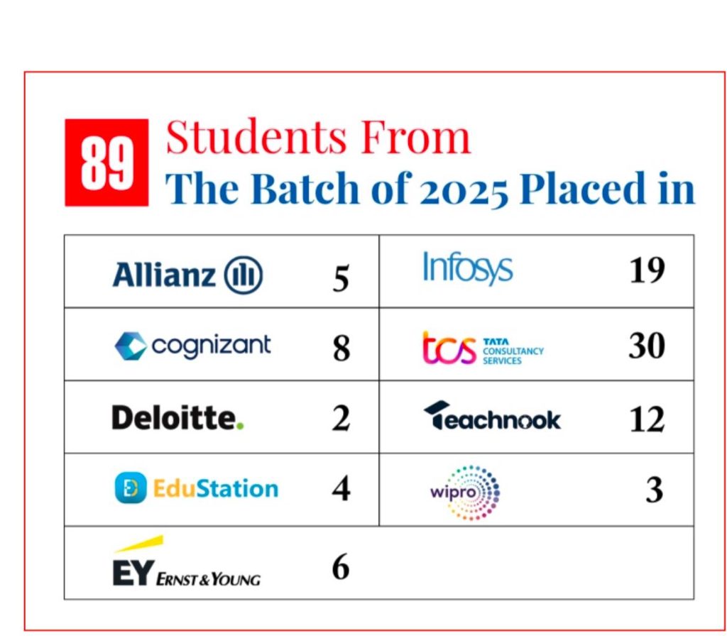 Our graduating students are prepared to use critical and innovative thinking, rigorous research, cutting-edge technology, a problem-solving approach, and sustained hard work to achieve targets. The high worth and employability of our students is reflected in the success of our campus recruitment. Our alumni are already adding value to some of the best companies in India.