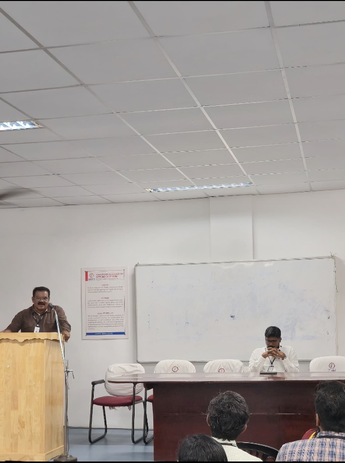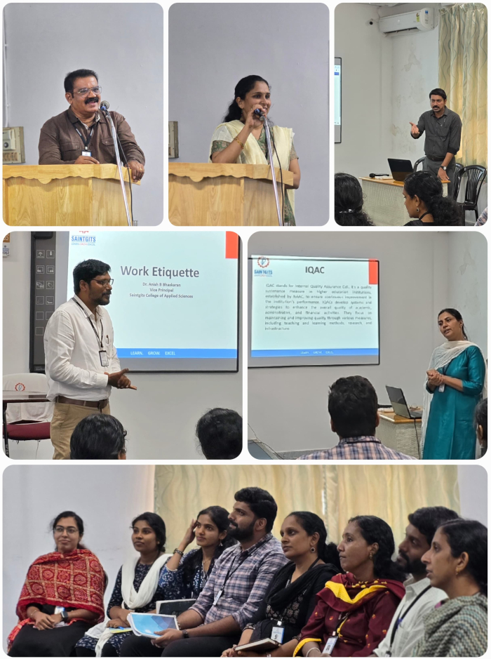 The New Faculty Orientation Programme for the academic year 2025–26 was conducted with the objective of acquainting newly joined faculty members with the institutional vision, work culture, academic tools, and quality assurance processes of Saintgits College of Applied Sciences on 11 July 2025 from 1.00 pm to 4.00 PM . The event provided a platform to introduce key administrators, clarify expectations, and instill a sense of belonging among the new members of the academic community.